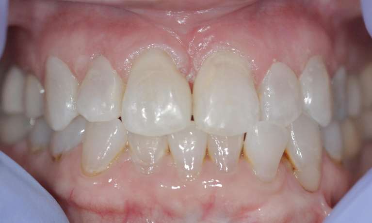 We discussed resin versus porcelain veneers and decided this was a perfect case for resin bonded veneers.