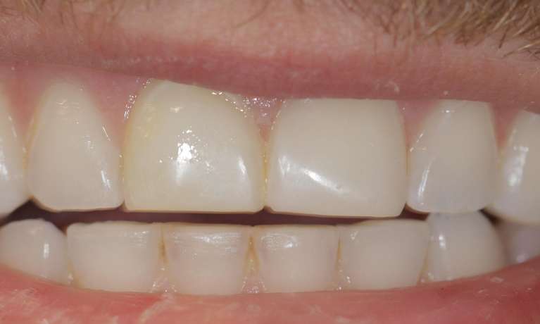 This patient broke his front tooth playing sports. It was not painful or sensitive; he was just concerned with the way it looked. Without numbing the tooth we were able to match his existing tooth characteristics and color, and he went home happy after a 10-15 minute appointment.
