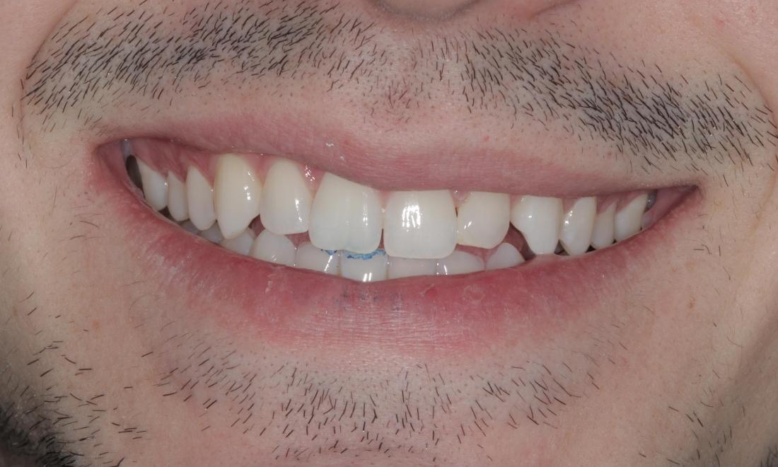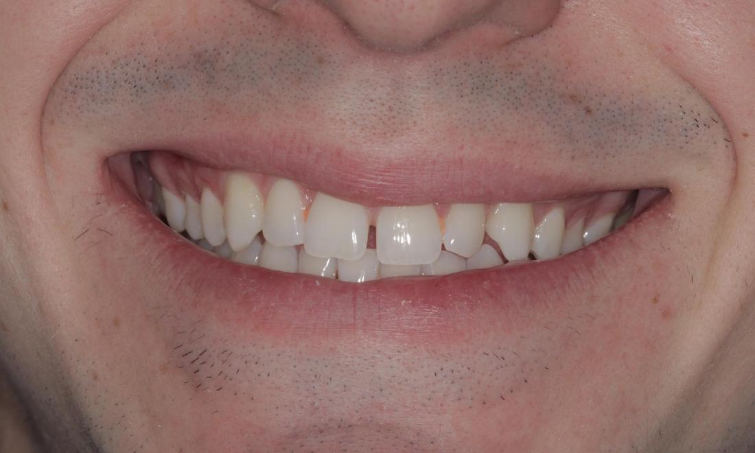 Using a new clear aligner system called "Smart Moves", we were able to successfully close the space between his upper front 2 teeth. Once the space closed, a little cosmetic bonding to improve and re-contour a few spots, and it is a great result!