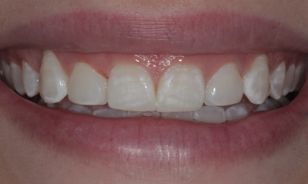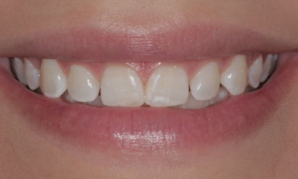 This patient was unhappy with the small size and spaces between her front teeth. With a combination of cosmetic bonding and veneers, we were able to improve an already beautiful smile!